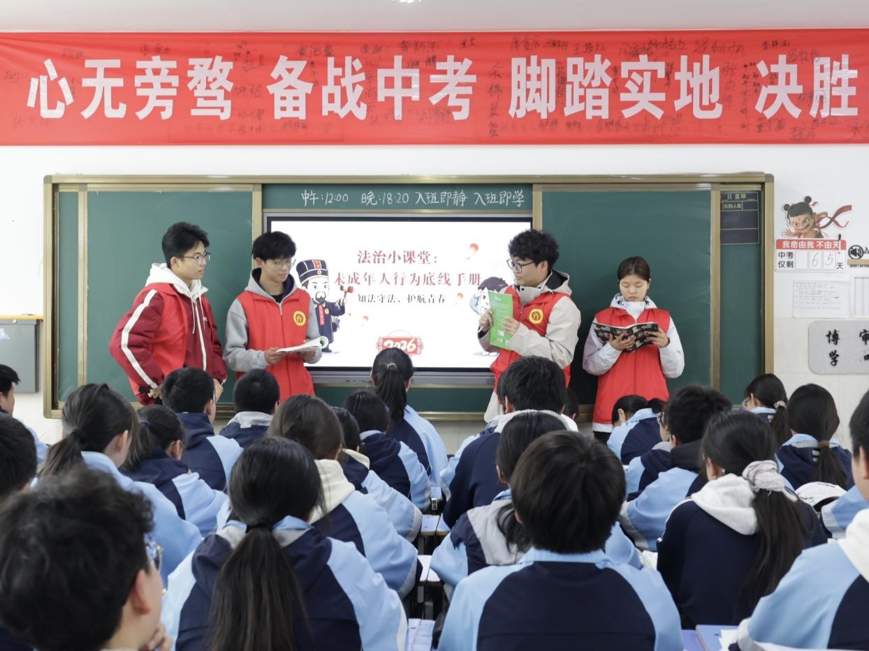 组织志愿者走进信阳市平桥区外国语中学,开展法治宣传教育。志愿者们围绕防范欺凌、自我保护等主题,通过情景剧演绎、互动问答等形式,将法律知识融入校园生活场景,引导青少年增强法治意识、提升自护意识,在寓教于乐中传递温暖与力量。