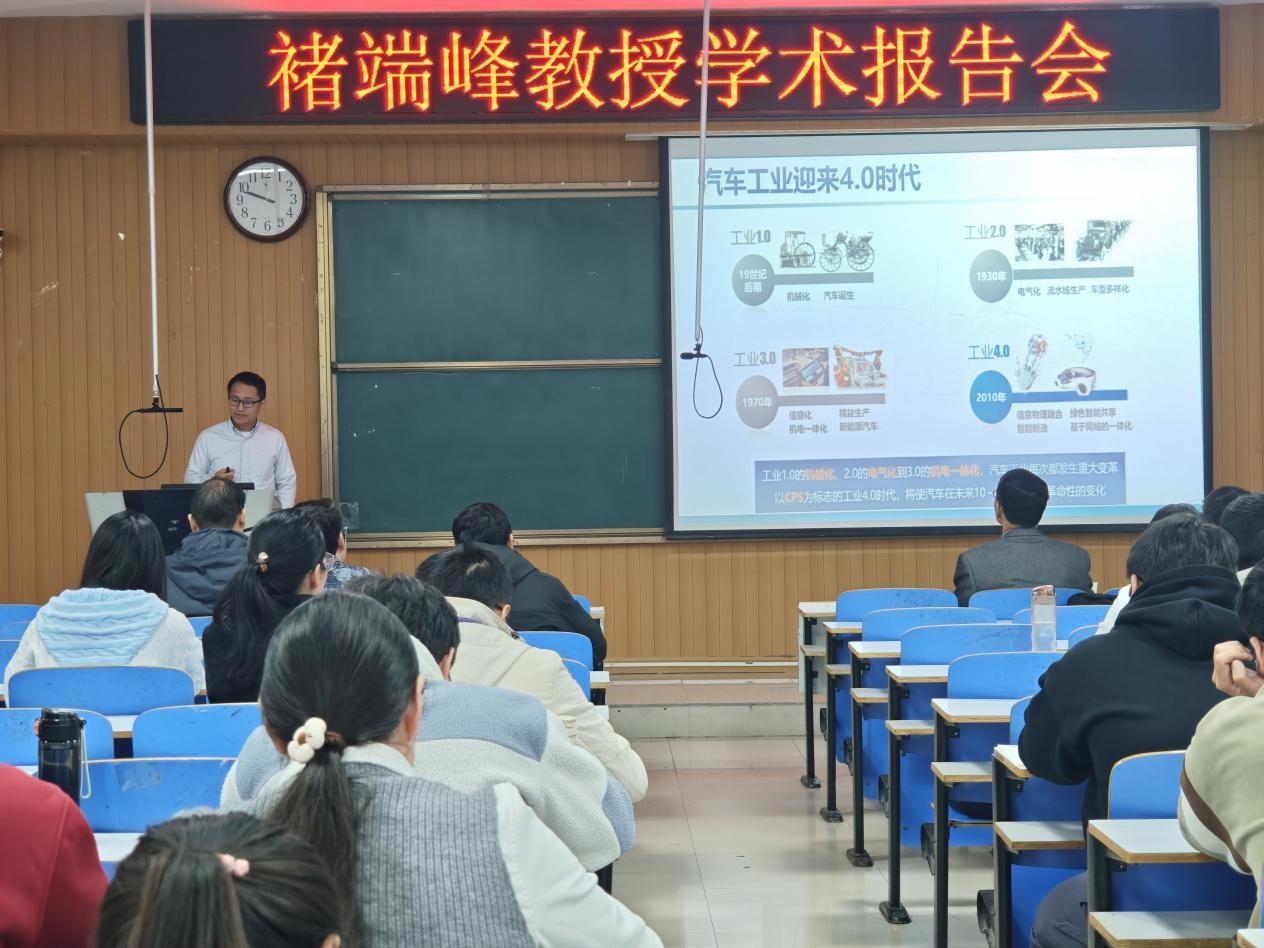邀请,武汉理工大学褚端峰教授为我校师生作了题为“智能网联汽车与自动驾驶研究及实践”的学术报告。报告会由澳门威尼斯人网址(最新)入口